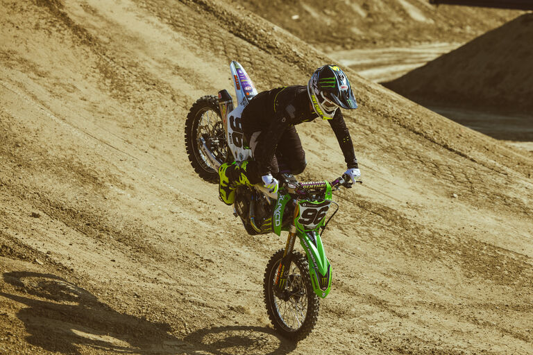 In 2016, Hodges won the Monster Energy Cup Best Whip and took home his first X Games medal: a silver in the MTX Best Whip. Since then, he’s accumulated a total of 11 X Games medals, including four golds: 2022 X Games Summer in MTX 110; 2021 X Games Summer in MTX 110; 2018 World of X Games in Real Moto; and 2018 X Games Minneapolis in MTX Quarterpipe High Air. Hodges also won the Red Bull Imagination event in both 2021 and 2022. He has created one of the most popular dirt bike video series in the action sports segment and is considered one of the most popular and influential people in the Powersports industry. He hosted the X Games Moto X disciplines at his own riding compound, the “Slayground,” in 2021 and 2022 and currently rides a Kawasaki KX 450F.