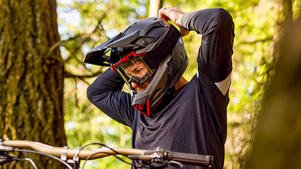 Lastly there are many finishing details that our development team added to elevate the Full-10 to the top of the helmet game. The flying bridge visor is fully adjustable and designed to break away easily in a crash, we added titanium d-rings with a magnet closure to cut weight and keep things out of the way when you are riding. The Full-10 meets ASTM DH and BMX, as well as NTA e-bike certifications. And the medium Full-10 is 130 grams (Full-10 1000g vs Full-9 1130g) less than a medium Full-9.
