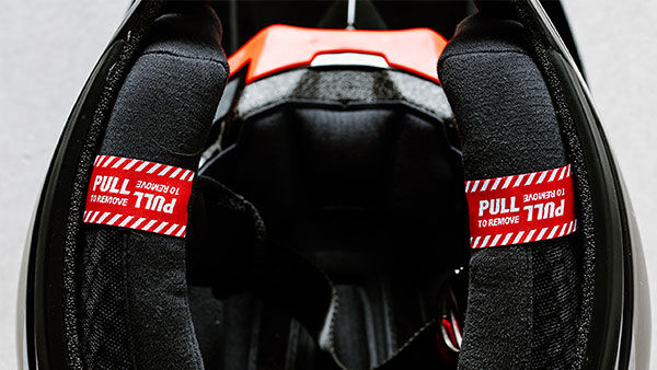 Our Magnefusion cheek pads can be removed from the bottom of the helmet, even if the rider is still in it.