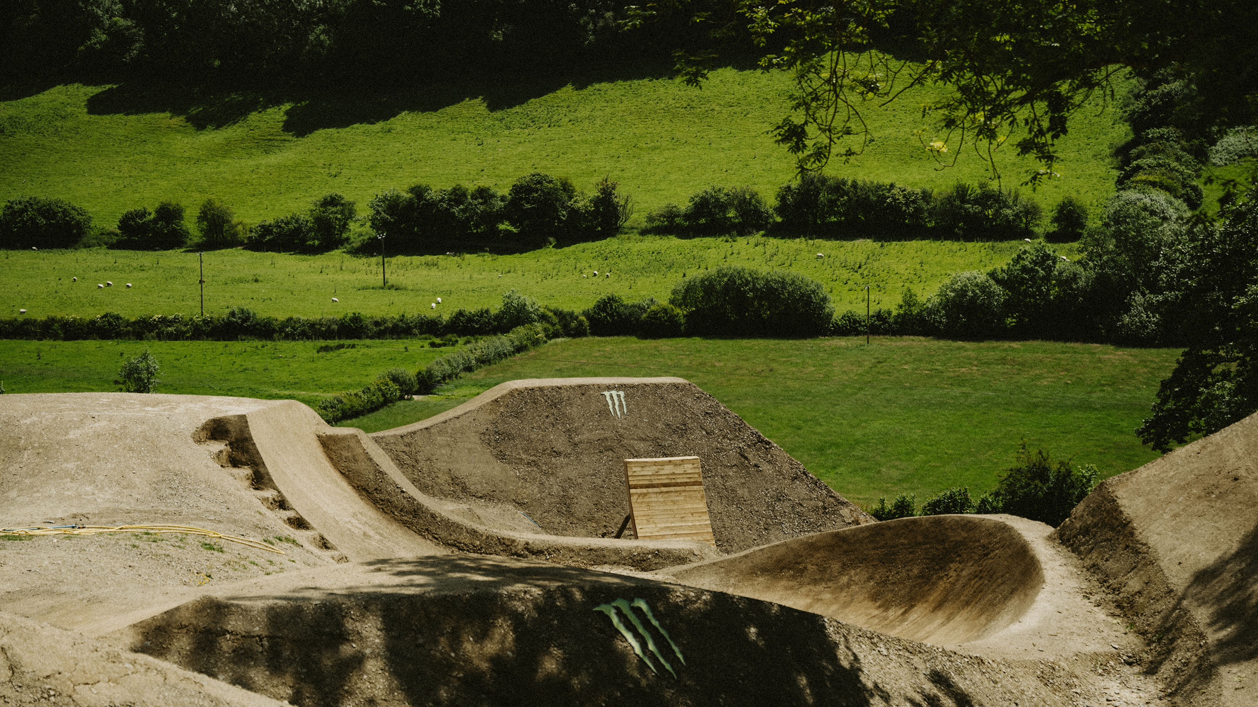For those unfamiliar with Hodgy, he is one of the most charismatic and trailblazing builders in the scene today, renowned for his innovation and skillful use of topography in constructing dirt jumps. Since Hodgy and Veronique began working on the compound in 2022, it has garnered widespread acclaim in the jump community for its distinctive features and thoughtful integration with the natural environment. What started as a modest jump spot on the propertly named “Lucky Dip,” has rapidly evolved into a premier park known as “Maes Loonskie,” earning the honor of hosting the Monster Backyard Brawl.